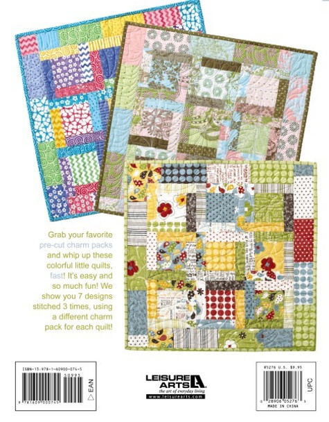 Leisure Arts Three Times The Charm Quilt Book- Grab your favourite pre-cut charm packs of 5″ fabric squares to make quick and easy quilts for home decor and baby blankets. So quick, so easy, and sew much fun. Each of the 7 quilts has step-by-step cutting and sewing instructions with full-color diagrams. Each is shown sewn in 2 alternate fabric color and pattern combinations to inspire your creations. The piecing is fast and simple. Perfect for table toppers, wall hangings, and baby shower gifts. Projects include Amanda, Bertha, Charlotte, Dora, Emma, Fiona, and Greta; blocks made of layered squares, diamonds, stripes, crosses and more with a variety of detailed borders. Finished quilt sizes measure between approximately 28″x 28″ and 38 3/4″x 42 3/4″. Beginner skill level. 40 pages in a softcover.