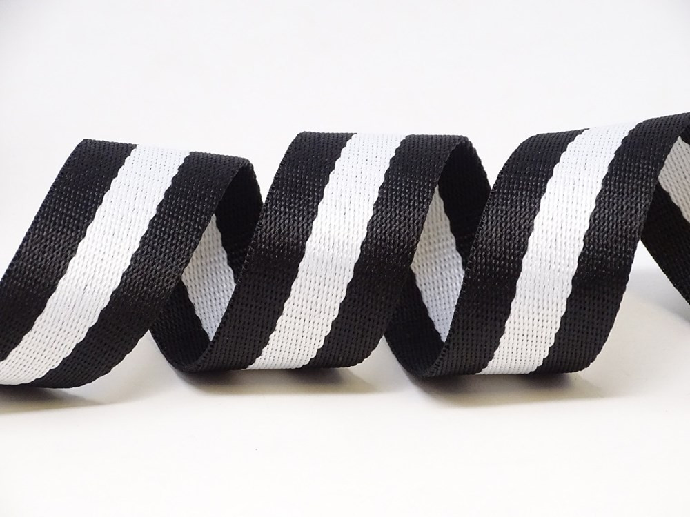 30mm Striped Cotton Blend Webbing – 5m Roll – Black/White