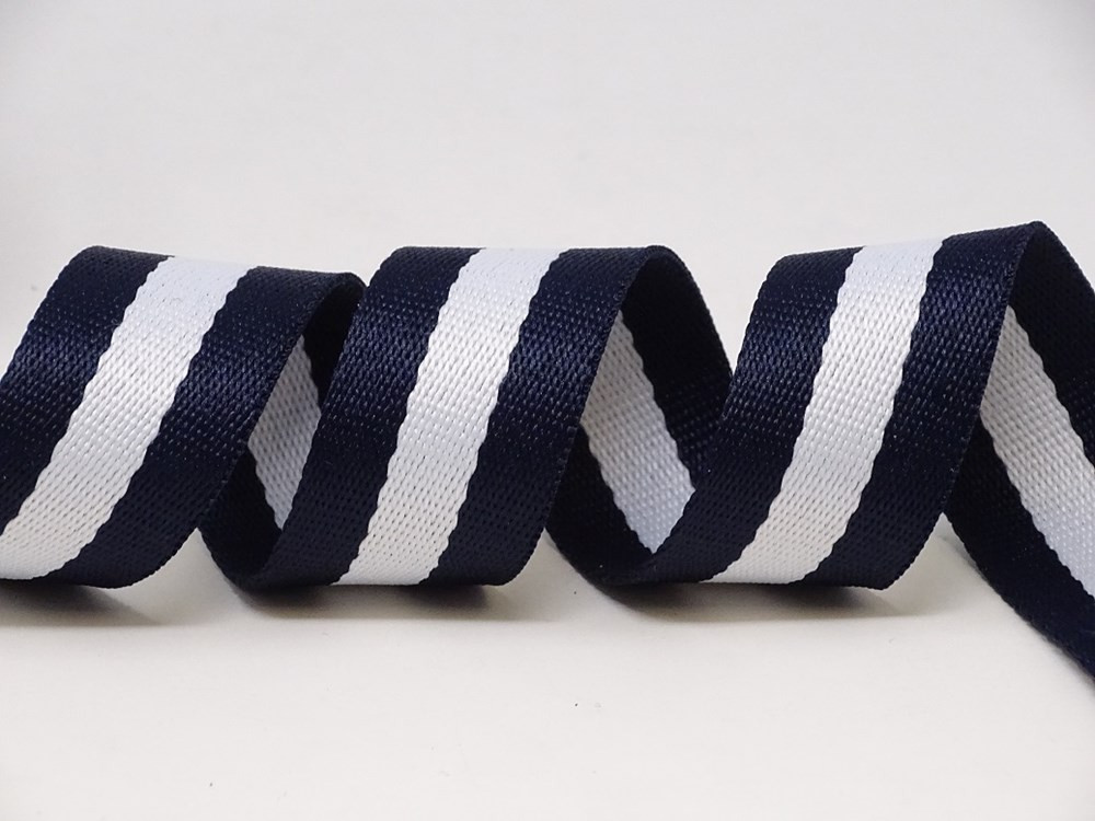 30mm Striped Cotton Blend Webbing – 5m Roll – Navy/White