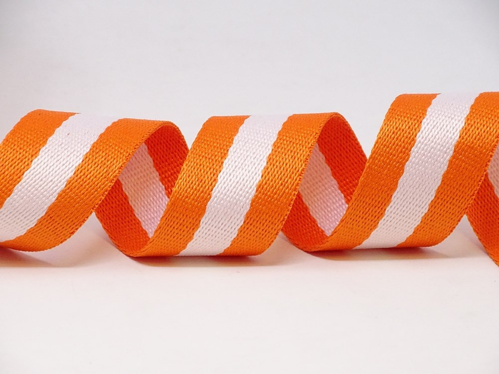 30mm Striped Cotton Blend Webbing – 5m Roll – Orange/White