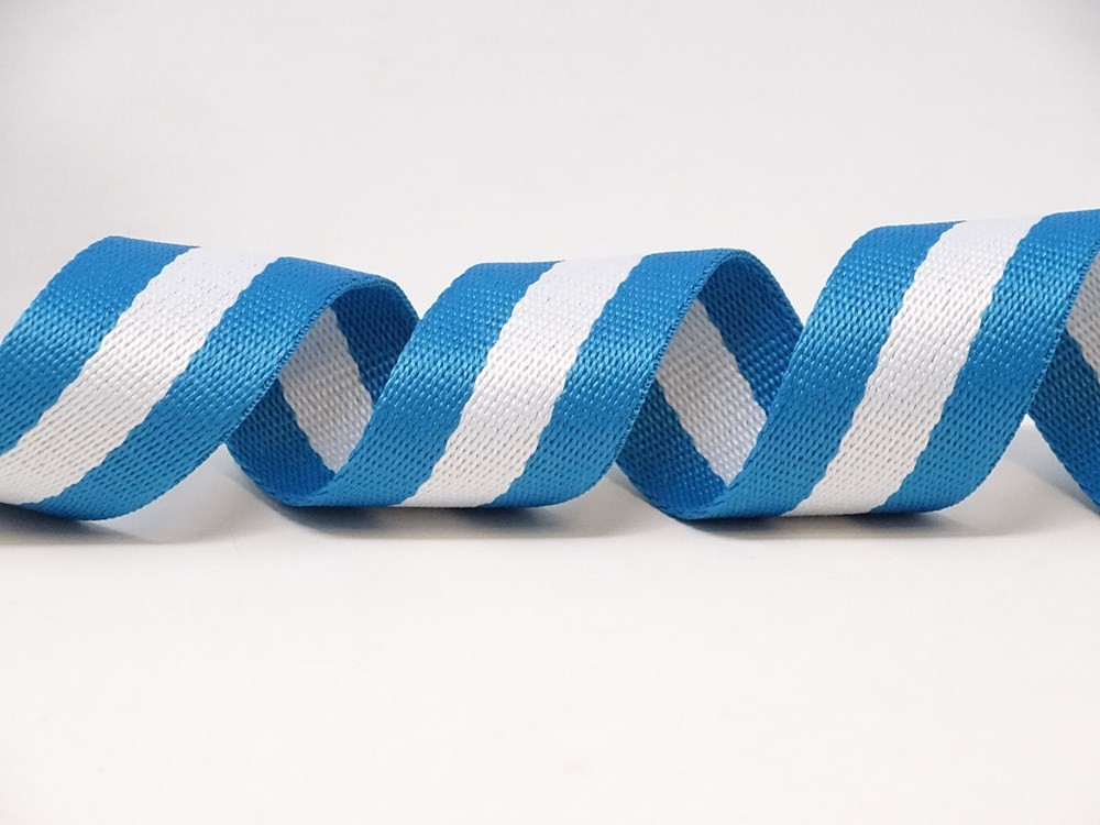 30mm Striped Cotton Blend Webbing – 5m Roll – Teal/White