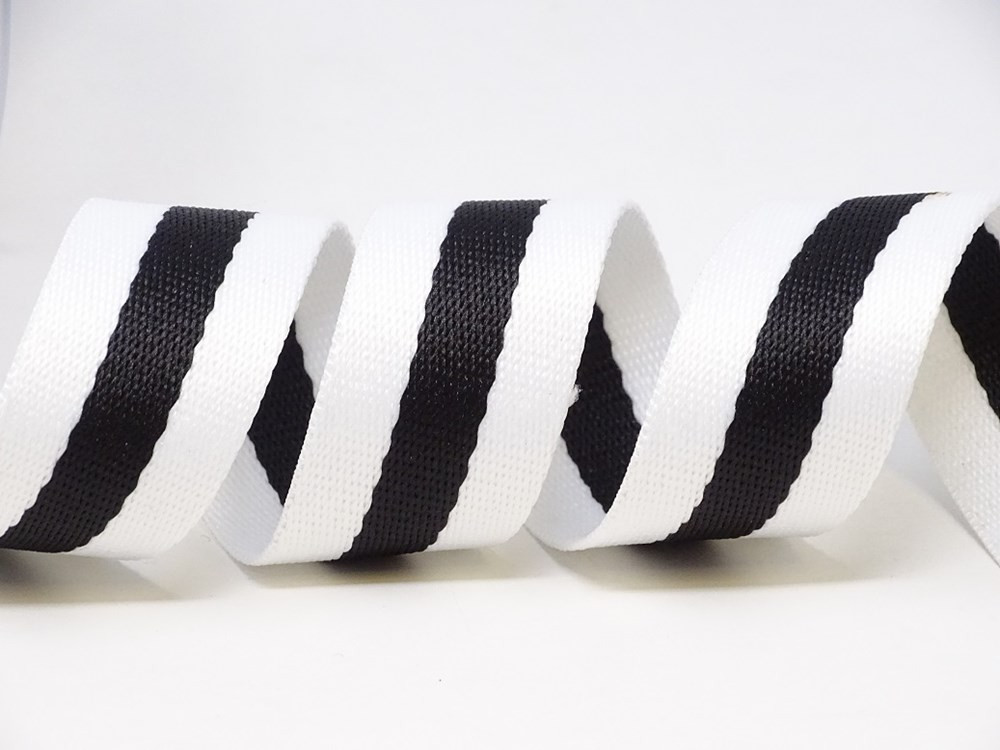 30mm Striped Cotton Blend Webbing – 5m Roll – White/Black