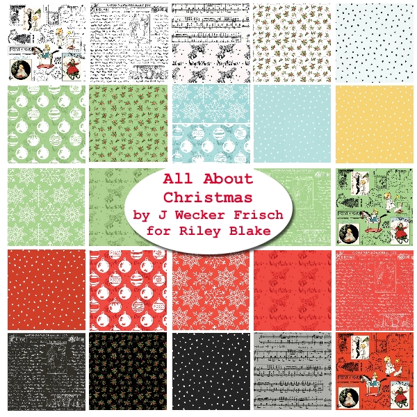 “Can anyone tell me what Christmas is all about?” wonders Charlie Brown. Linus’ answer inspired designer J Wecker Frisch to illustrate this festive collection based on antique post cards. Snowflakes, holly, ornaments, carols, and characters from the story of Jesus’ birth on faded backgrounds of red, white, and green will put you in the Christmas mood.