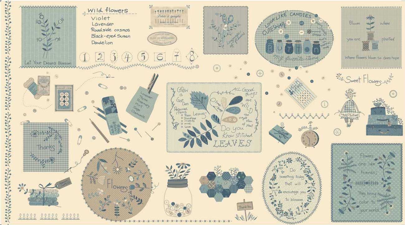 Masako Wakayama has designed this beautiful collection, American Country for Stof Fabrics. Ditsy floral prints cosy up to contemporary texty lists of the seeds that grow in a rambling American country garden. This range also features fantastic English Paper Pieced cheater prints; perfect for creating the illusion of a classic hexagon print. These cheater prints also make wonderful additions to quilted jackets and bags. A superb collection with heaps of potential for everyone!