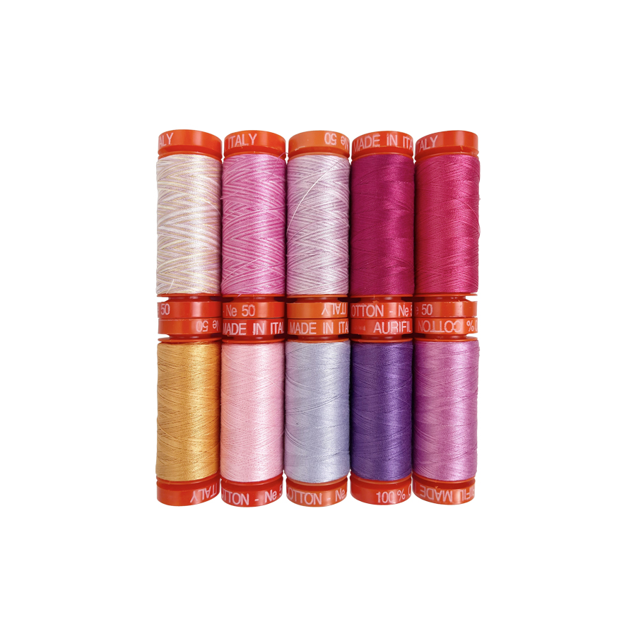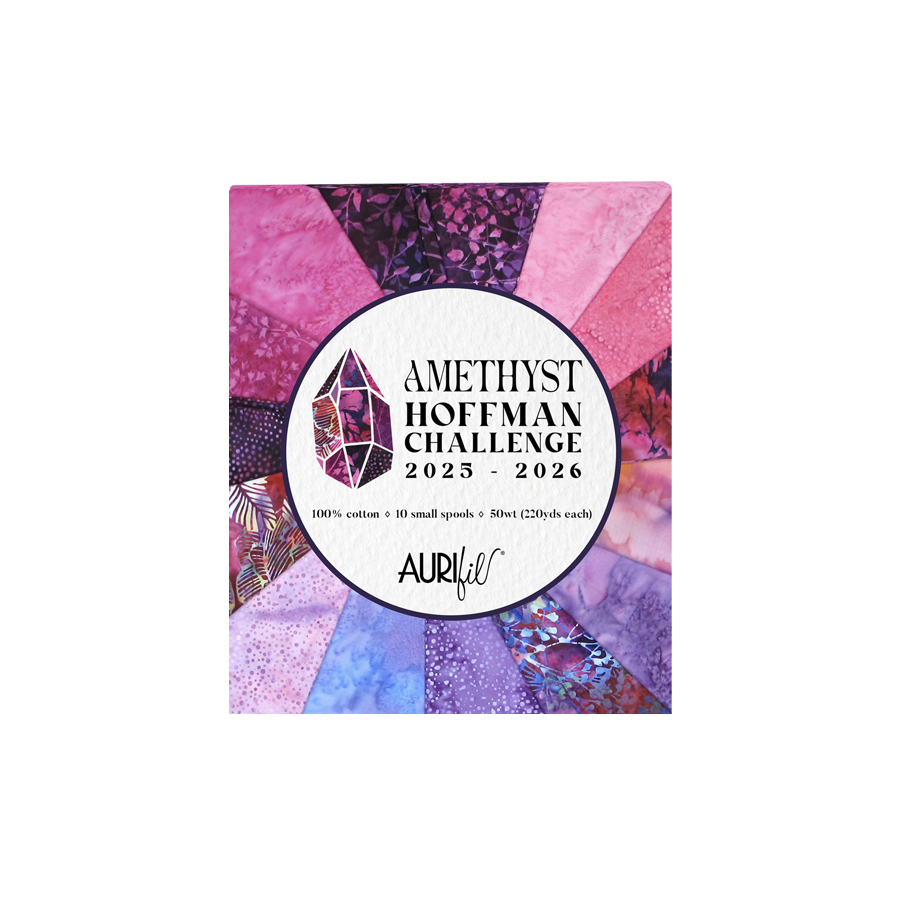 The centrepiece of the 2025–2026 Hoffman Challenge is a stunning new batik collection featuring 15 brilliant fabrics in vibrant shades of pinks and purples. Participants must use at least 5 of the 15 featured batiks and are encouraged to enhance their entries with threads from the coordinating Aurifil thread set—ten small spools of 50wt thread in a complementary palette of pinks, purples, and blues.