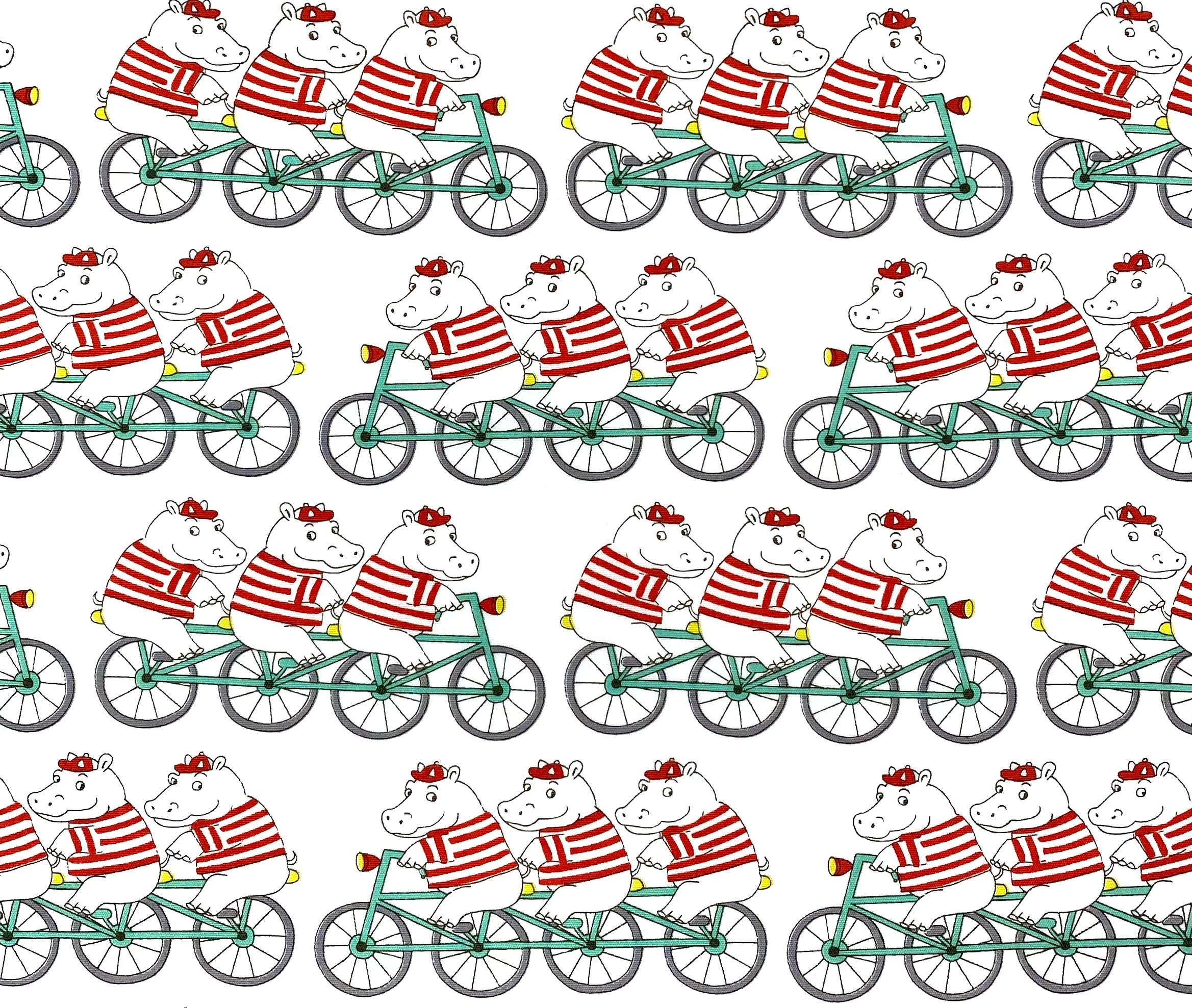 These darling Hippos are enjoying a bike ride together.