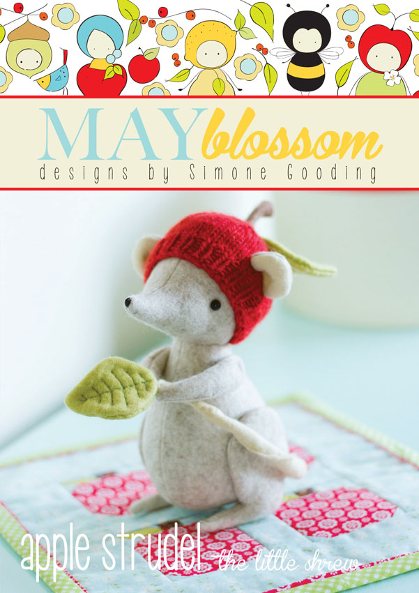 Pattern for a 100% wool felt Shrew with her own apple mini quilt.