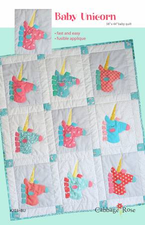 A cute little unicorn for your adorable sweetie. The blocks stitch up quickly with fusible machine applique and the sashing is super easy. Finished size 38″ x 44″ baby quilt.