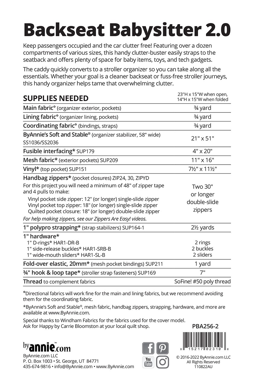 The finished organizer measures 23″H x 15″W when open and 14″H x 15″W when folded for attaching to a stroller.