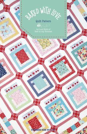 The Baked with Love Quilt by Lori Holt of Bee in my Bonnet features pieced ovens set with sashing and posts and a pieced border. The quilt uses a 10″ stacker with additional yardage. Finished size is 67in x 75in.