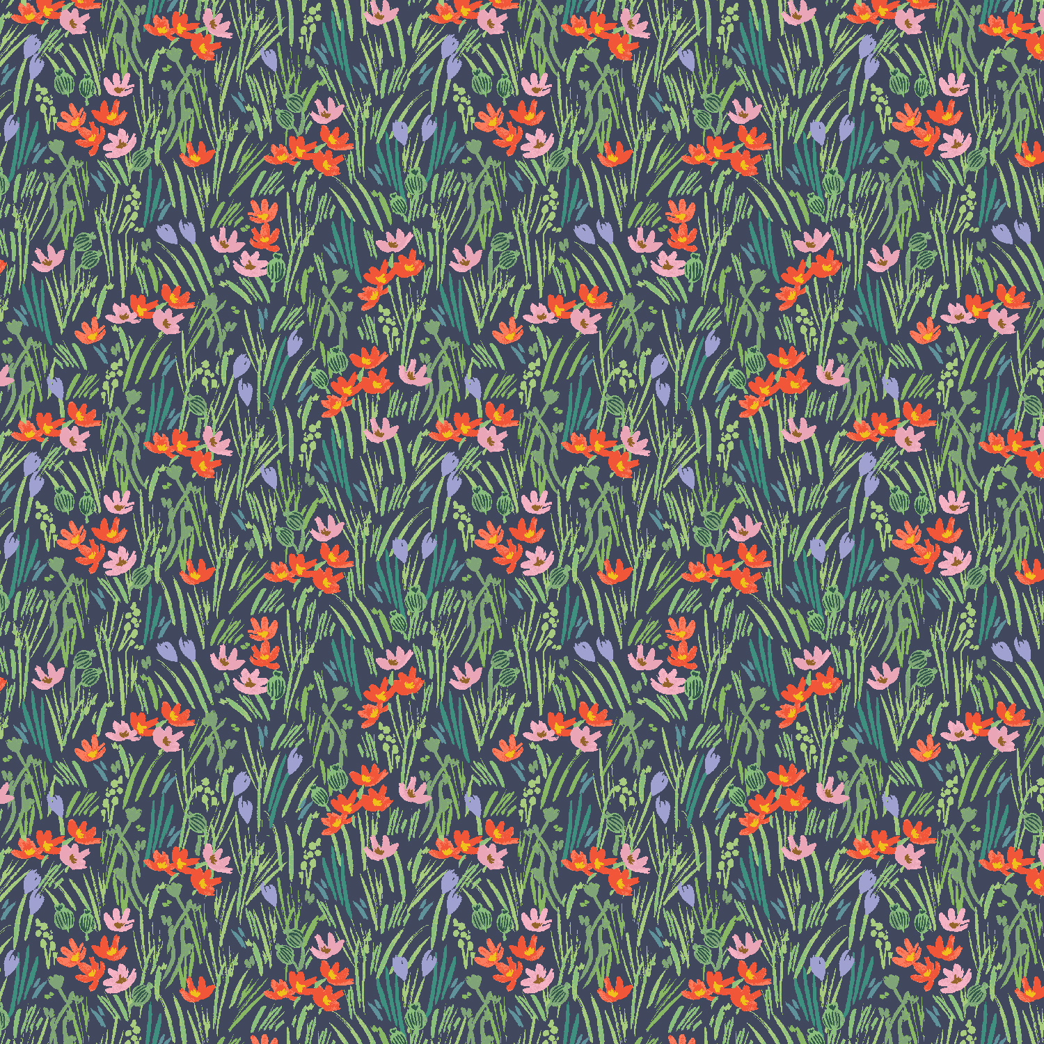Bramble fabric collection designed by Rifle Paper Co. for Cotton + Steel. Inspired by lush gardens and vintage textiles with organic, abstract prints that incorporate iconic Rifle Paper Co. floral elements. This cotton is a versatile material ideal for creating garments, accessories, quilts, and other home décor items.