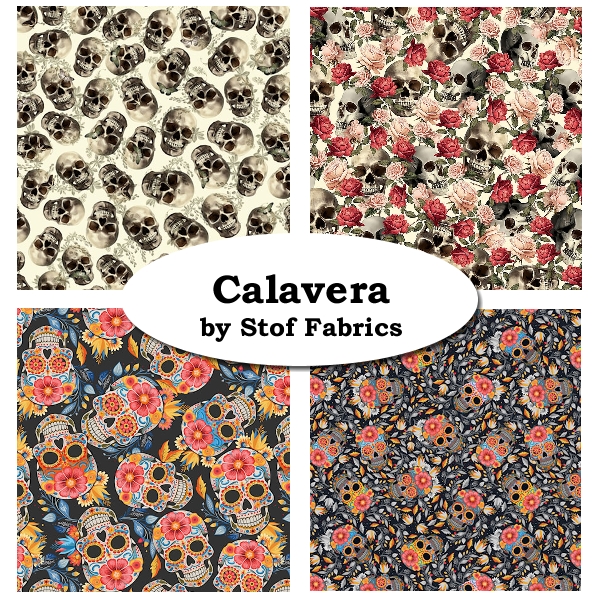 Calavera by Stof fabrics Featuring Skulls, Sugar Skulls and flowers