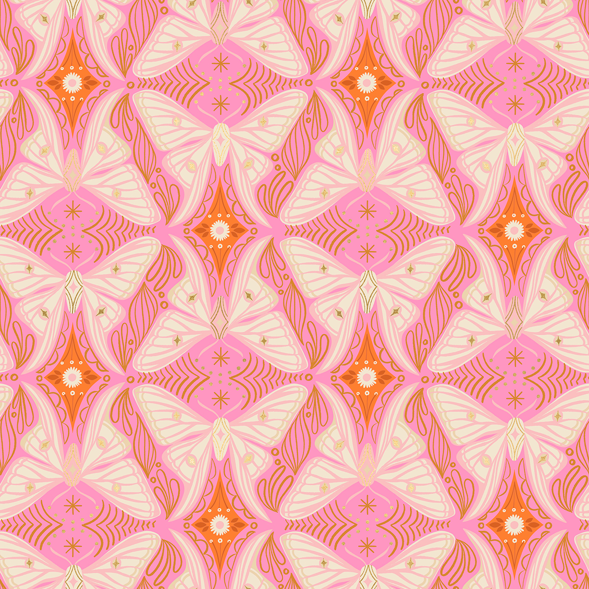 Camellia by Melody Miller for Ruby Star Society. Melody was inspired by the idea of a 1960’s tea room layered in an assortment of prints and patterns from wallpaper, upholstery, flowering plants and china dishes.