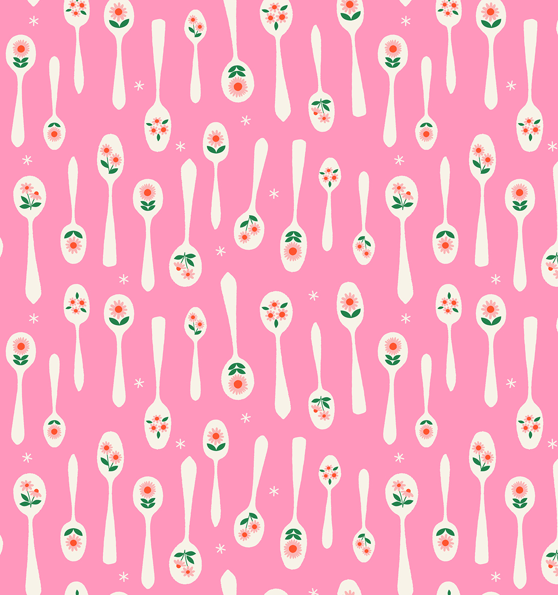 Camellia by Melody Miller for Ruby Star Society. Melody was inspired by the idea of a 1960’s tea room layered in an assortment of prints and patterns from wallpaper, upholstery, flowering plants and china dishes.