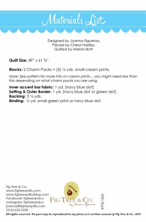 A couple of your favorite charm packs is all you need for this fun scrappy quilt. Or go even more scrappy than we did and make your inside “bar” blocks from a variety of fabrics as well! Fun and quick to put together… laying it out on point just makes it look that much more special.