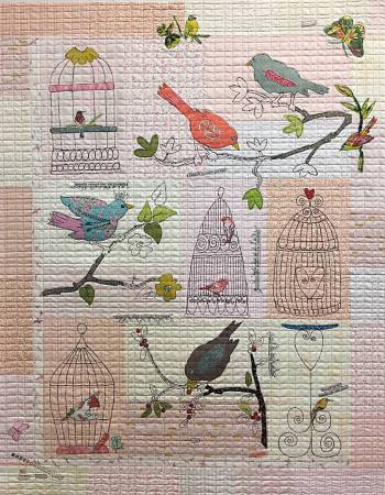 Chirp Chirp collage and free motion machine embroidery pattern by Laura Heine! Pattern includes full sized patterns and complete instructions to complete this darling wall hanging. Bird cages and other embroidery in this pattern is all free motion. Size 42 x 47.