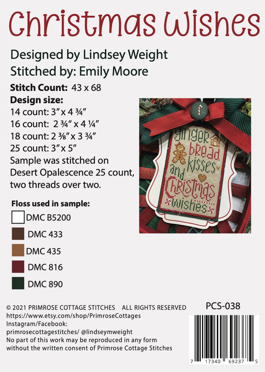 Christmas Wishes cross stitch pattern. Stitch Count 43 x 68 stitched on 25 count aida.