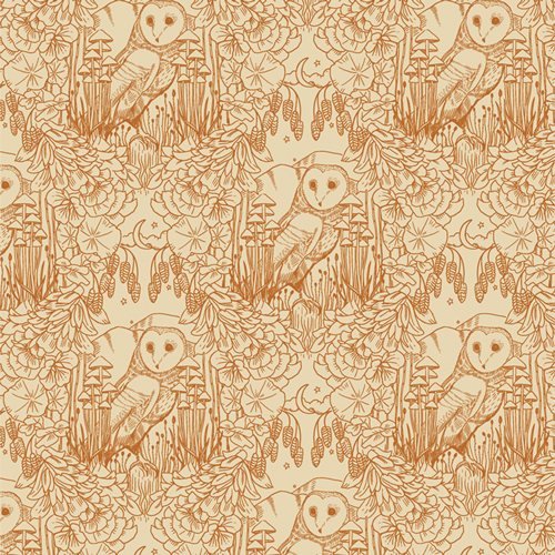 Trail through a mystical journey with ’Coyote Hill’ by Katie O’Shea, immersing in the enchantment of nocturnal creatures, starlit skies, and the iconic Californian poppy captured in flora & fauna and foliage woven into mesmerizing motifs, bringing the magical allure of the night to life.