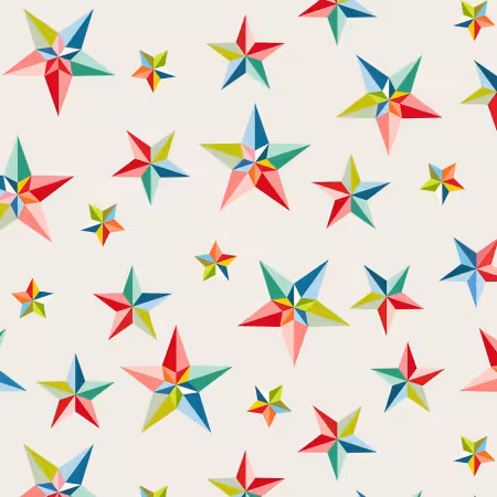 This vibrant fabric features a delightful pattern of multicolour pinwheel stars scattered across a light background. Each star is composed of various colours including red, blue, green, and yellow, creating a playful and eye-catching design. The stars vary in size, adding depth and interest to the fabric, making it perfect for a wide range of creative projects from quilting to apparel.