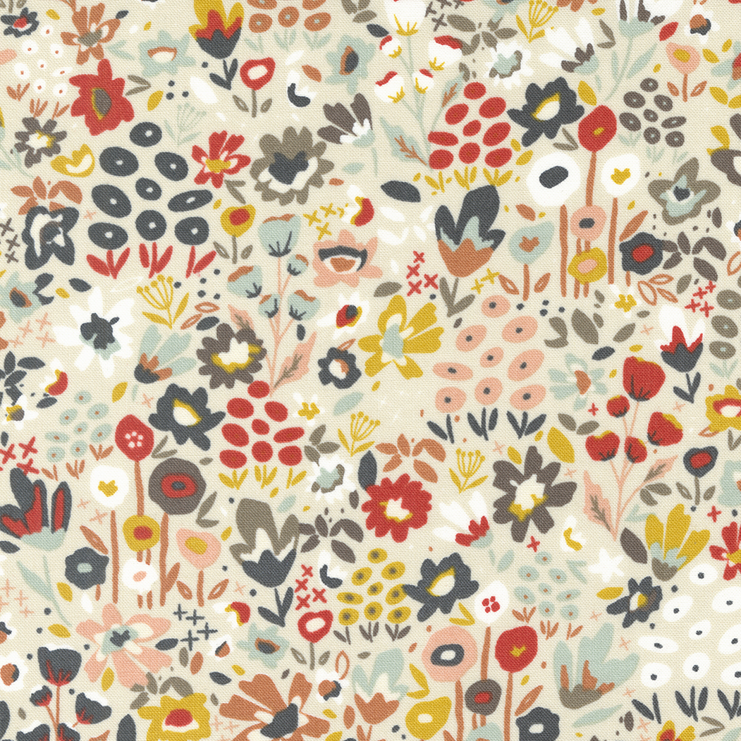 Dawn On The Prairie by Fancy That Design House for Moda Fabrics. “Dawn on the Prairie came out of the memories of that sweet family trip, where we were greeted every day with sunrises streaming in to the little cabin, hiking amongst grasses, picking wildflowers and simply being together.