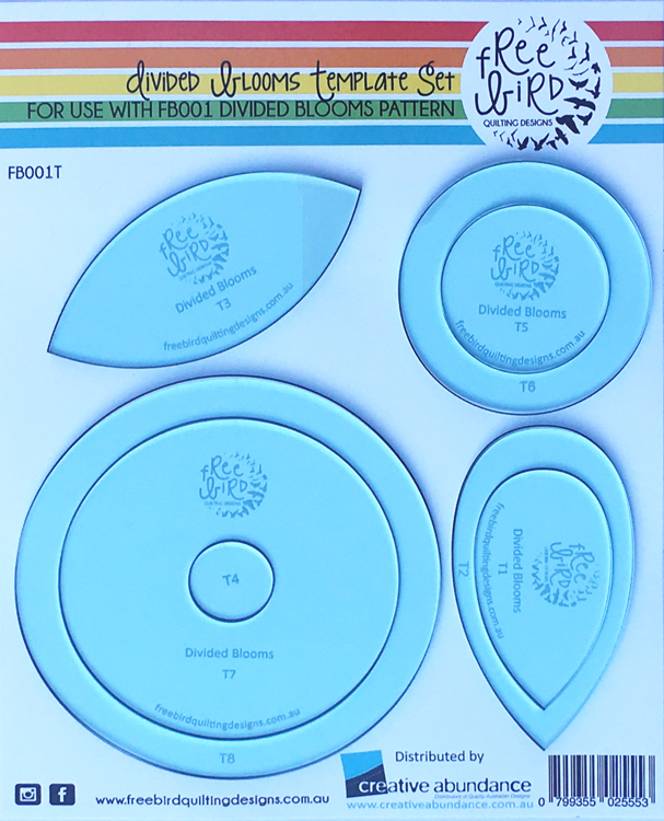 Divided Blooms uses applique to create a simple modern design that is perfect for pretty florals or more vibrant fabric. Includes pattern, instructions, and complete set of 8 acrylic templates needed to make this quilt.