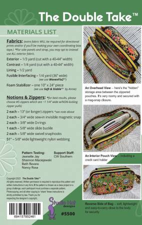 This Double Take bag pattern includes two separate zippered storage areas with a nifty drop-in storage area in between and secured with a magnet snap. Additionally, there’s a slot pocket on the bag front that’s perfect for a cell phone secured with a mag-snapped Closure tab. It measures 8.5″ wide X 5″ tall X 3.5″ and is perfect for everyday and for traveling.