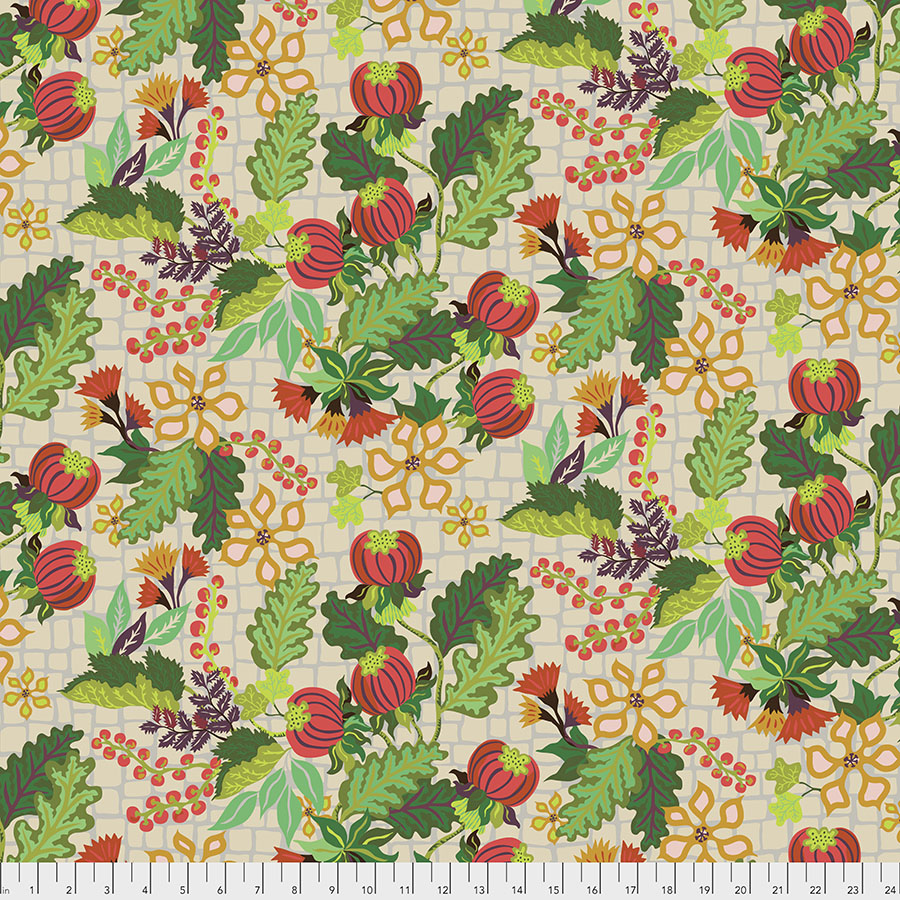 Designed by Kathy Doughty for FreeSpirit Fabrics, this cotton print fabric is from the Earth Made Paradise collection, which is an invitation to gather and create in the spirit of the earth and spirit that impulsively moves us to wild abandon. Celebrate the eclectic mix of stretching tropical vines, dangling fruit, dancing birds among from the leaves and a graphic plaid. Bask in warm sunlight of summer colours or find relief in cool shadows of the evening. It is perfect for quilting, apparel, and home décor accents.