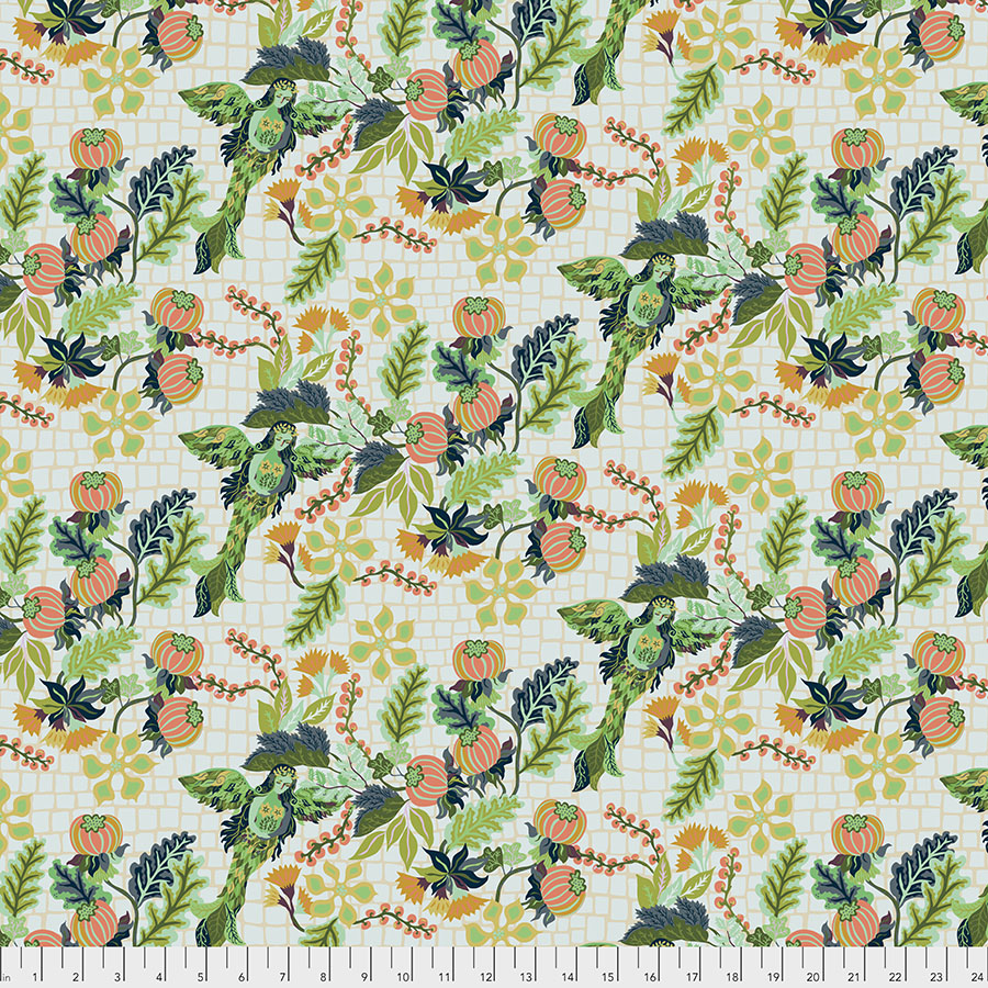 Designed by Kathy Doughty for FreeSpirit Fabrics, this cotton print fabric is from the Earth Made Paradise collection, which is an invitation to gather and create in the spirit of the earth and spirit that impulsively moves us to wild abandon. Celebrate the eclectic mix of stretching tropical vines, dangling fruit, dancing birds among from the leaves and a graphic plaid. Bask in warm sunlight of summer colours or find relief in cool shadows of the evening. It is perfect for quilting, apparel, and home décor accents.