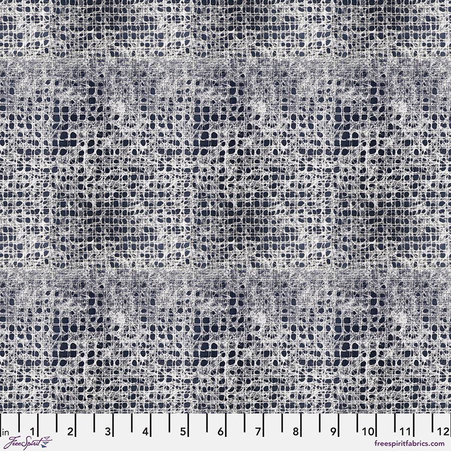 ‘My fourth collection for FreeSpirit Fabrics is called Eclipse. This collection was inspired by a combination of events that were happening in my life during 2024. On April 8th, The Great North American Eclipse occurred, inspiring me in many ways. I viewed the Eclipse in New York City at Madison Square Park; the park was filled with thousands of people leaving their busy workday to come together and view this natural wonder. In a city that can often make you feel anonymous, sharing this amazing experience with so many people was heartwarming and created a sense of mutual togetherness. At this time, I was also expecting my first child and was going through an eclipse of changes in both my physical body and life. I was evolving to become a mother and moving out of NYC after calling it home for fourteen years. With so many changes in my life, it was both a terrifying and exciting time. My art has always been an extension of my emotions, and the pieces I create help me work through them. The Eclipse collection captures these emotions with a sense of movement, roundness, boldness, togetherness, layers of light and dark, and intertwined, directional prints. The fourteen designs are made from my original monotypes. Monotypes are a one-of-a-kind printmaking practice created by painting directly onto a plate and running the plate through a printing press. In my monotypes for Eclipse, I utilized unique and unexpected textures of both natural and man-made objects such as vegetable wrappers, bubble wrap, netting, or discarded plastic packaging in my work. I enjoy this printmaking process because it involves a sense of spontaneity and it always includes an element of surprise. I look forward to seeing how you use the Eclipse collection in your next projects.’ Sarah Sczepanski