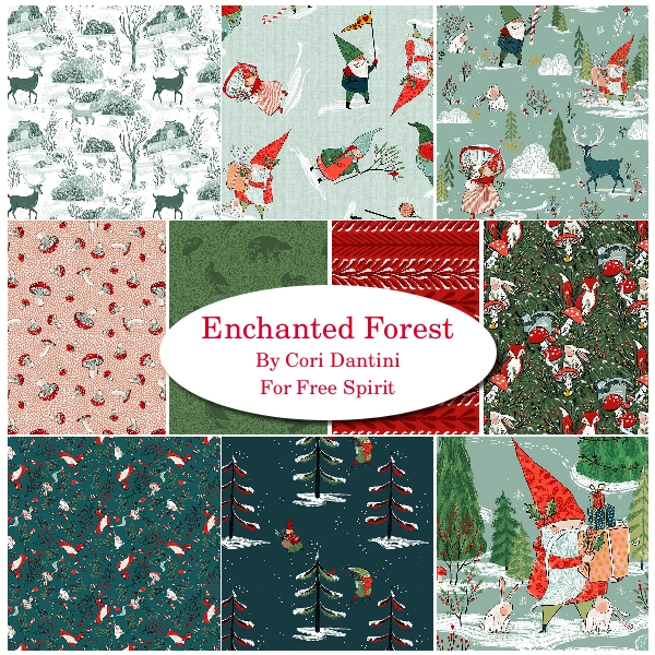 In the Enchanted Forest, playful animals frolic amongst speckled toadstools on the forest floor while gift-bearing gnomes busily roam the village with holiday spirit. These whimsical designs will create darling quilts, stockings, garments and more!!