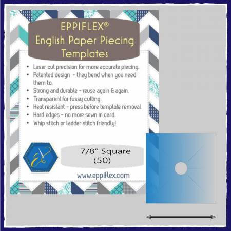 Laser cut for precision – for more accurate piecing. Cut with a patented design which enables them to bend when you need them to. Strong and durable – reuse again and again. Transparent for fussy cutting and precise positioning. Hard at their edges – no more sewn in card. Templates remove easily without stressing the seams. Heat resistant, press before template removal. Whip stitch or ladder stitch friendly.