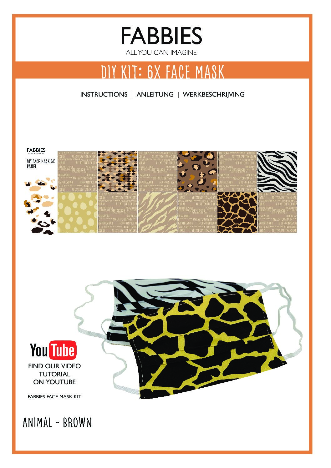 Fabbies Face Mask Kit – Square – Animal Print Brown