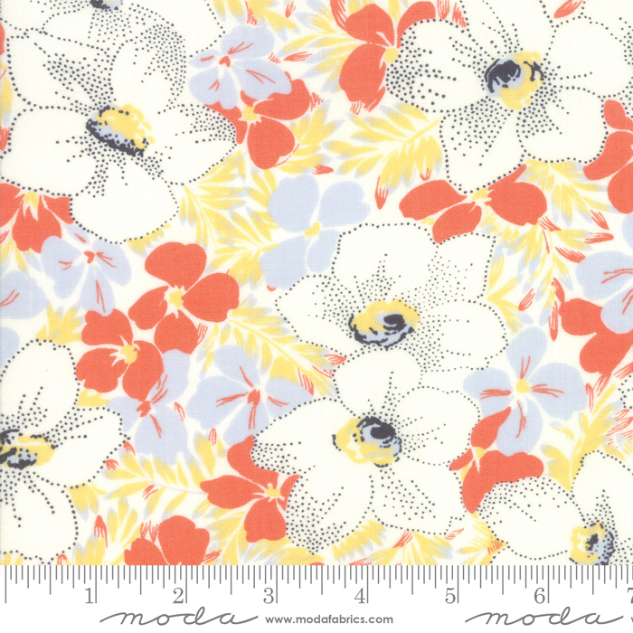 Summer. It’s about sunshine and the faded, muted colours that make us feel warm and happy. This range has a lighter prettier palette than Jen Kingwell’s past ranges. There are some pretty new floral designs and some very versatile geometrics. It’s a bit different look for Jen, but after all, life is too short to be predicable!