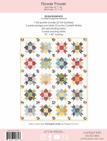 This lovely flower design quilt pattern features Farm Girls Unite fabric by Poppie Cotton.