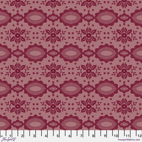 Inspired by memories of traveling in Mexico and Oaxaca. Nathalie visited the folk art museums and was impressed by the mix of lace, the bright cut-paper garlands and flowers, the terracotta animals, the heart motifs everywhere, and the colorful textiles and ribbons.  She wanted to create joyful patterns with the rich contrasts and colorful images.