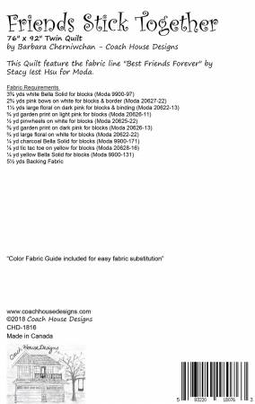 Friends Stick Together makes a twin size quilt (76in x 92in) for your favorite little girl.