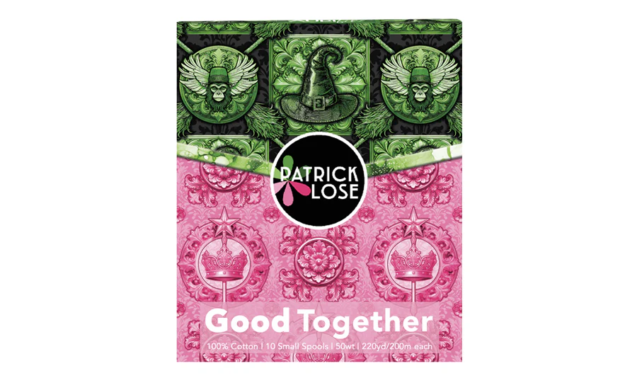es, pink goes good with green—and this thread collection proves it in the most magical way! Inspired by Patrick Lose’s GOOD TOGETHER fabric line, this 10-spool Aurifil set is a whimsical celebration of unexpected harmony. Each 50wt cotton spool has been handpicked to coordinate seamlessly with Patrick’s enchanting prints—delicate florals, playful crowns and wands, winged monkeys, witch hats, and soaring broomsticks. Whether you’re cheering for Glinda or rooting for Elphaba, these sweet pinks and vivid greens dance together in perfect sync, ready to add a bold, theatrical flourish to every stitch.