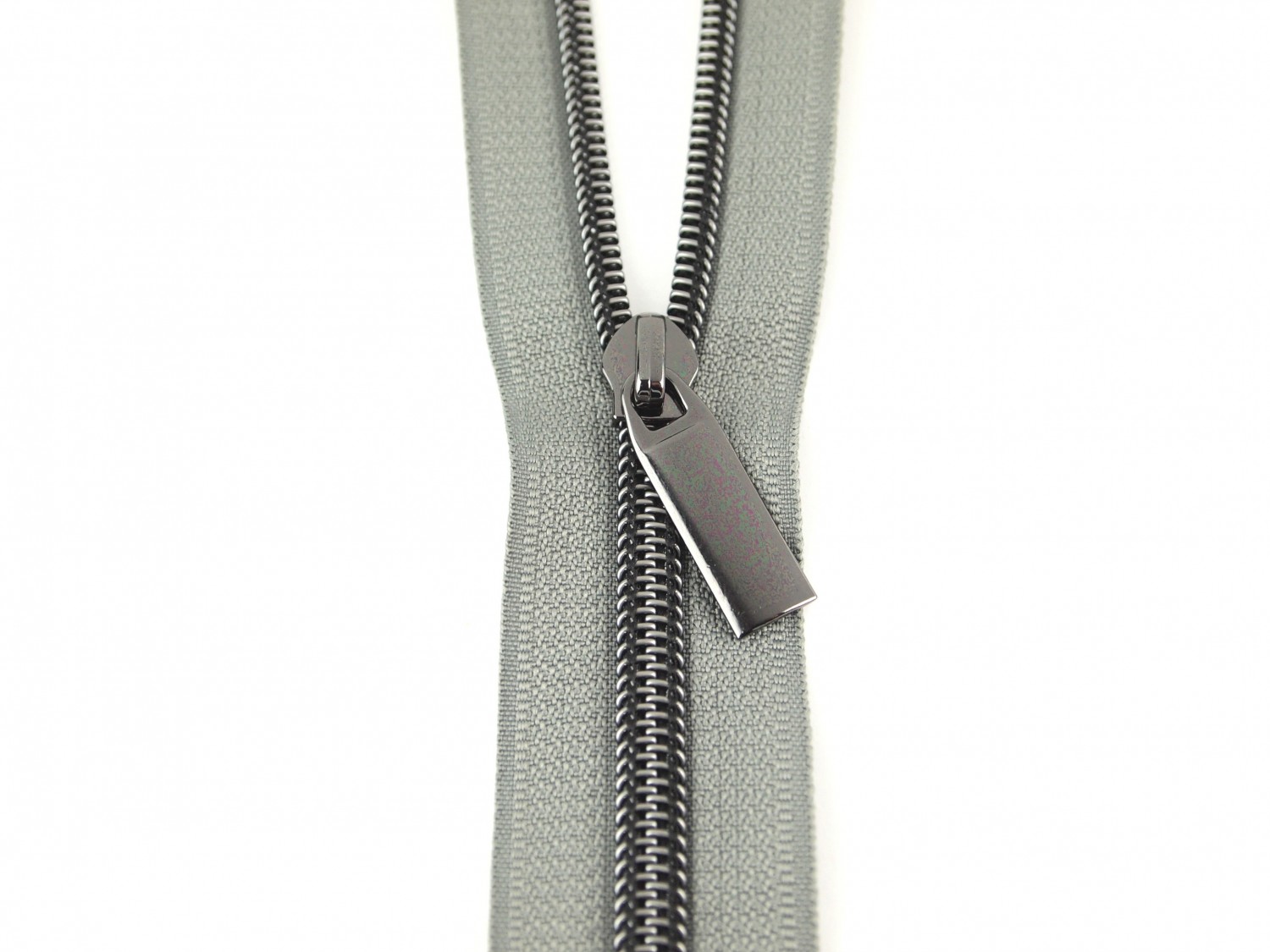Grey #3 Nylon Gunmetal Coil Zippers – 3 Yards With 9 Pulls