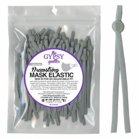 Gypsy Quilter Drawstring Mask Elastic Grey – 8in – 60ct