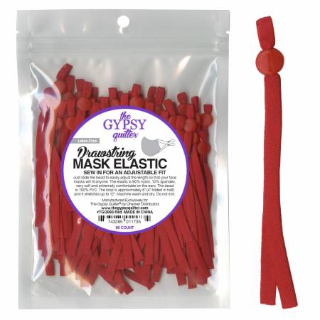 Gypsy Quilter Drawstring Mask Elastic Red – 8in – 60ct