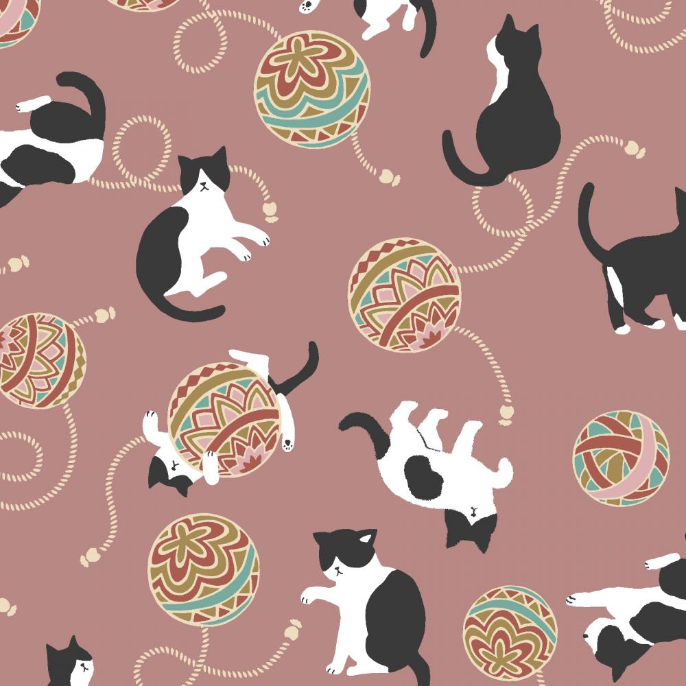 Playful cats frolic among colourful yarn balls. Hachiware Roman blends charming cat faces with a romantic spirit.
