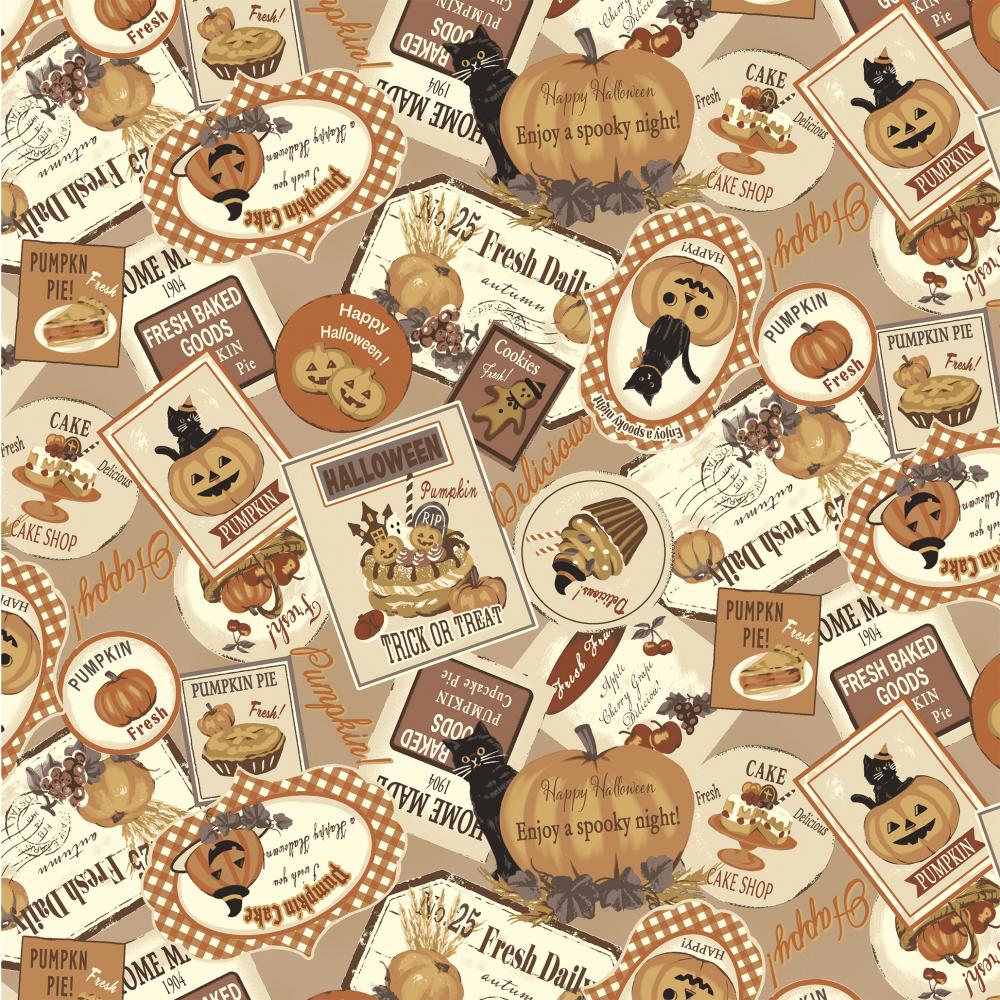 Festive Halloween motifs come alive with pumpkins, a black cat, and delicious treats like pumpkin pie. Orange hues and phrases like “Trick or Treat” add to the seasonal cheer.
