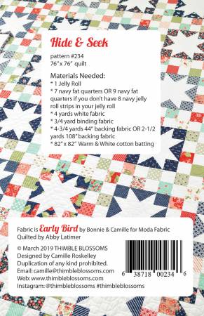 76″ x 76″ quilt, jelly roll friendly, simple piecing. Pattern is full color, with detailed instructions.
