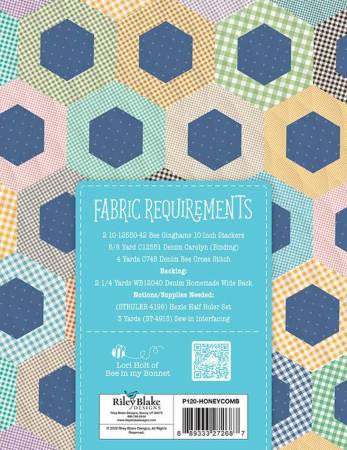 The Honeycomb Quilt by Lori Holt of Bee in my Bonnet features pieced and appliqued hexagons. Finished size is 68″ x 76″.