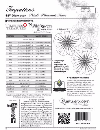 The Impatiens pattern provides enough papers to make (4) five-petal flowers. We are excited to release our first ever designs that include the quilting design on newsprint, right in the pattern for you to trace onto your finished petals!  Additionally, this pattern will include a scannable link directly to a video of Judy showing the technique for applying the binding!