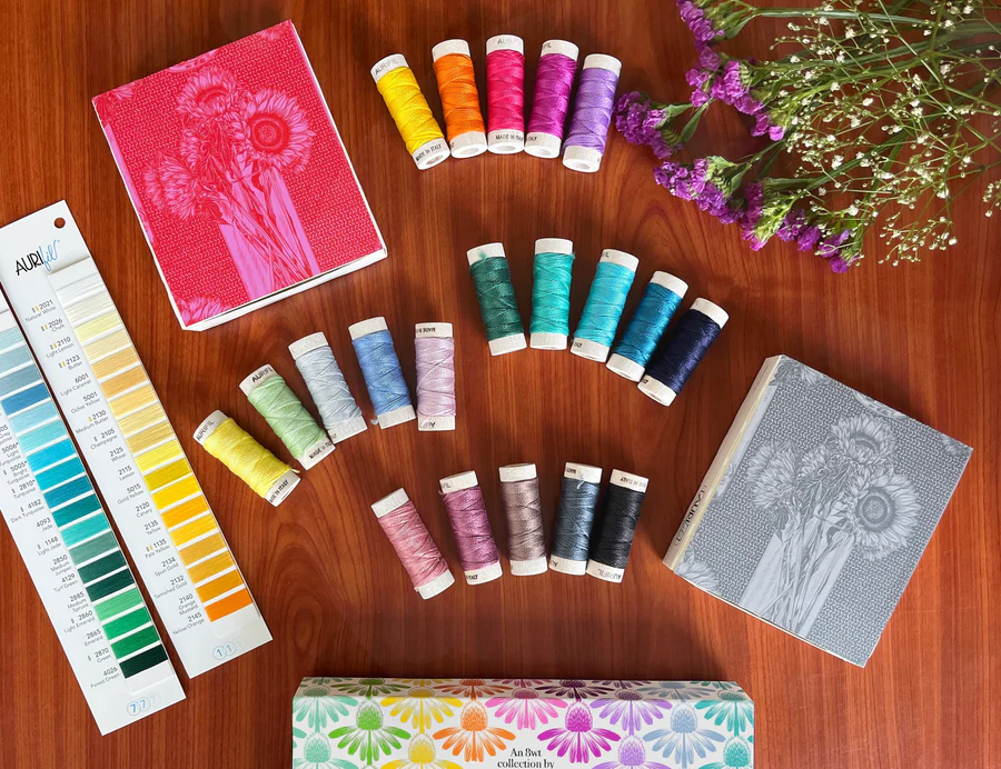 This stunning new release unveils 20 fresh shades of Aurifil’s 100% Cotton 8wt thread, meticulously curated by Anna Maria. A striking array of vivid hues sit alongside essential neutrals, promising to ignite boundless creativity.