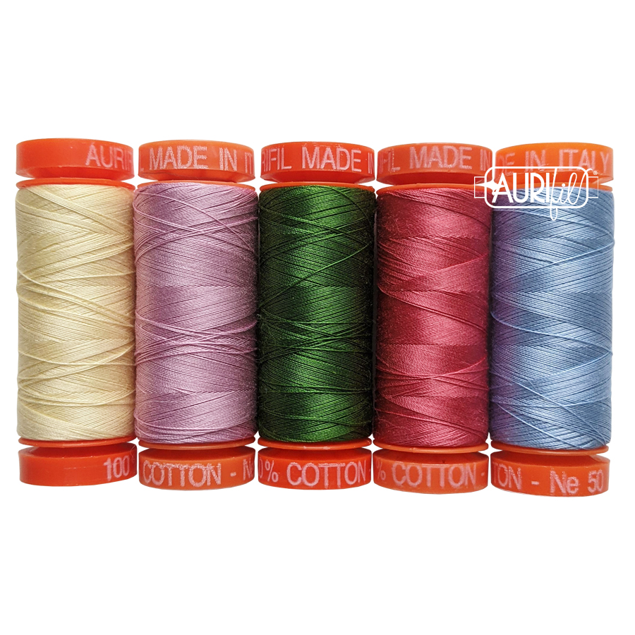 Into the Meadow is sure to inspire a wide range of new and creative works of art. The Hoffman team assembled 5 colours of Aurifil’s versatile 50wt thread to ensure that you have everything needed to create a winning project!