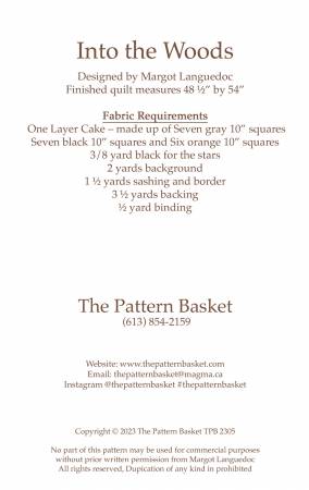 Into the Woods by Margot Languedoc for The Pattern Basket. Fun pieced quilt for fall and Halloween – would also be beautiful in Christmas Fabric.