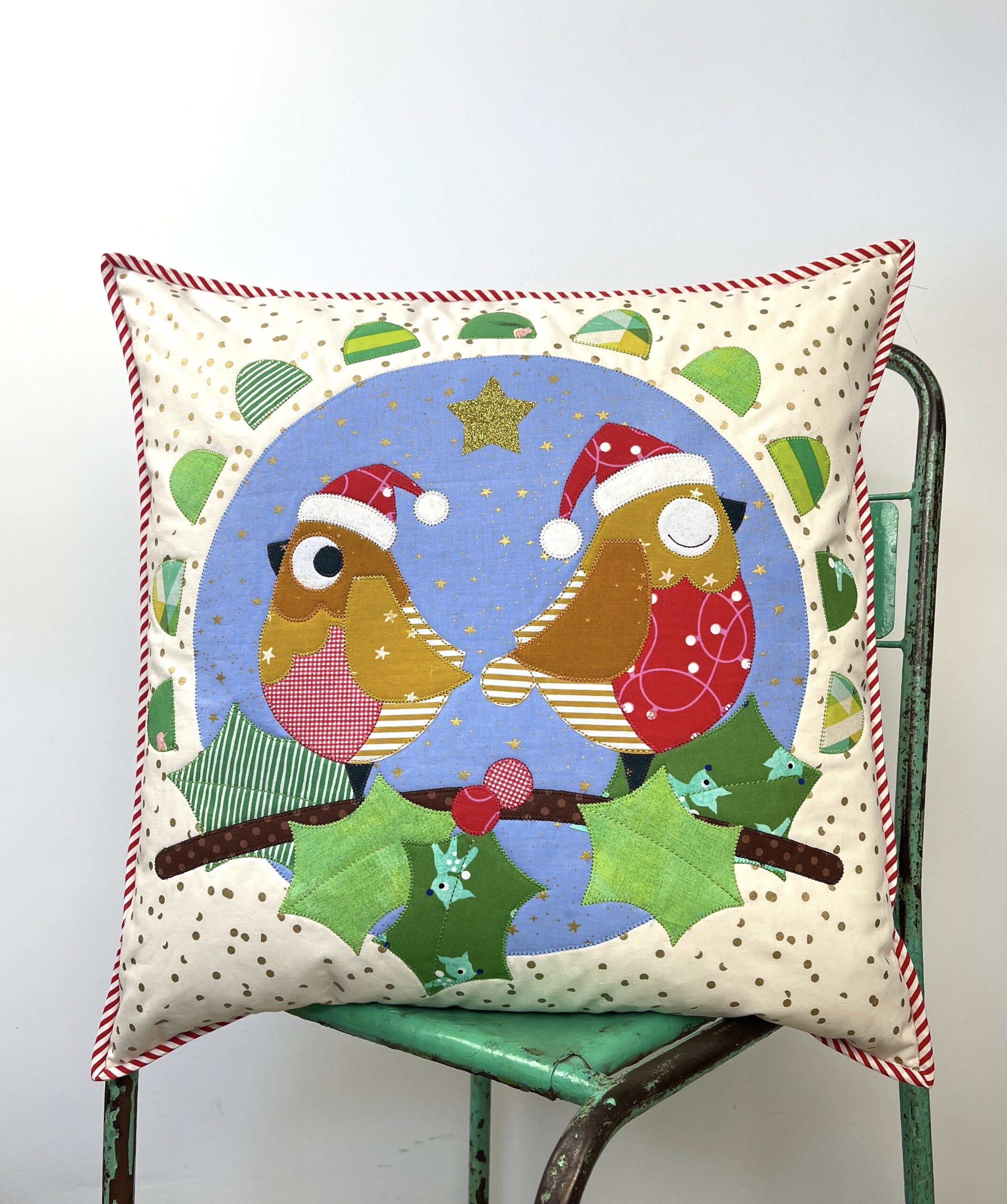 As featured in our Designer Newsletter, this adorable Christmas-themed cushion would look adorable propped up next to your other holiday decorations! The Jolly Robin pattern was created by Claire Turpin, a prolific Australian pattern-maker, known for her fun and creative applique designs.
