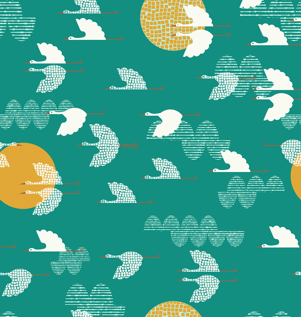 Koi Pond by Rashida Coleman-Hale for Ruby Star Society. Rashida revisited some of the art from early in her design career but recreated it in new colours with her more experienced eye. She wanted the colour palette of this collection to feel like a sunny day at a lake, filled with warm peaches, yellows, toffees and pops of deeper teal.